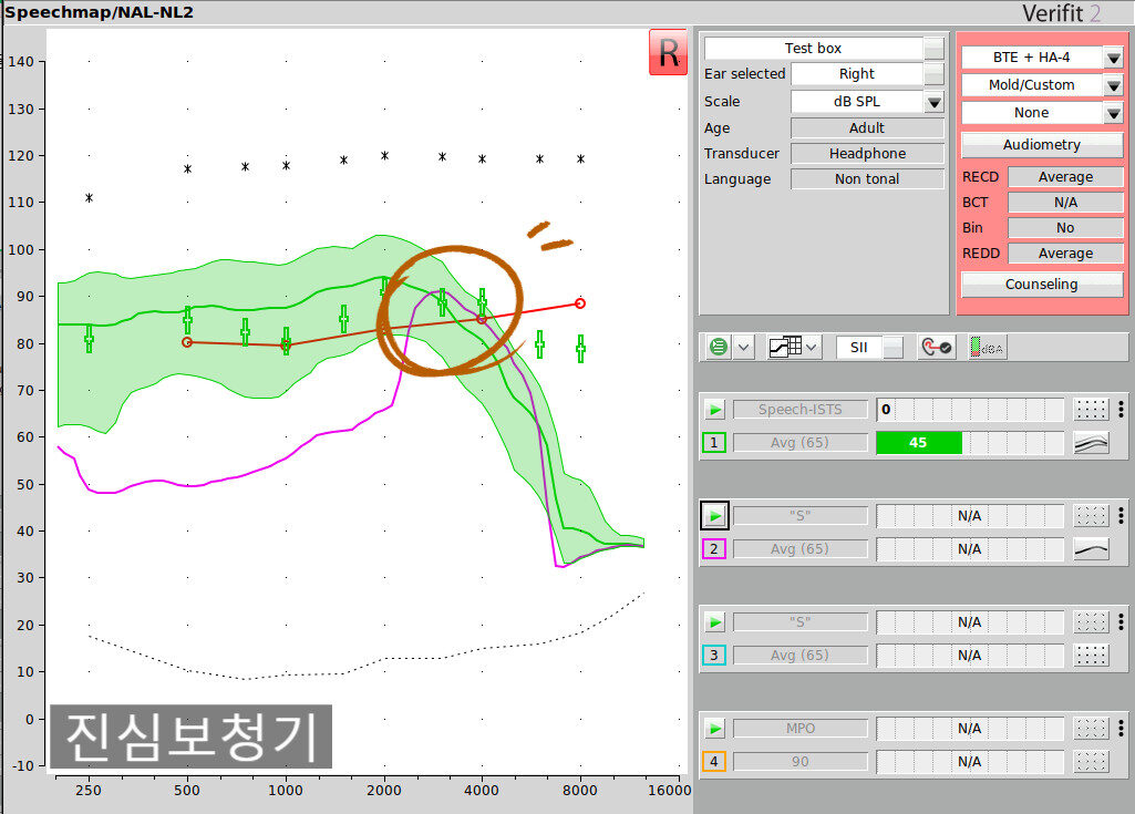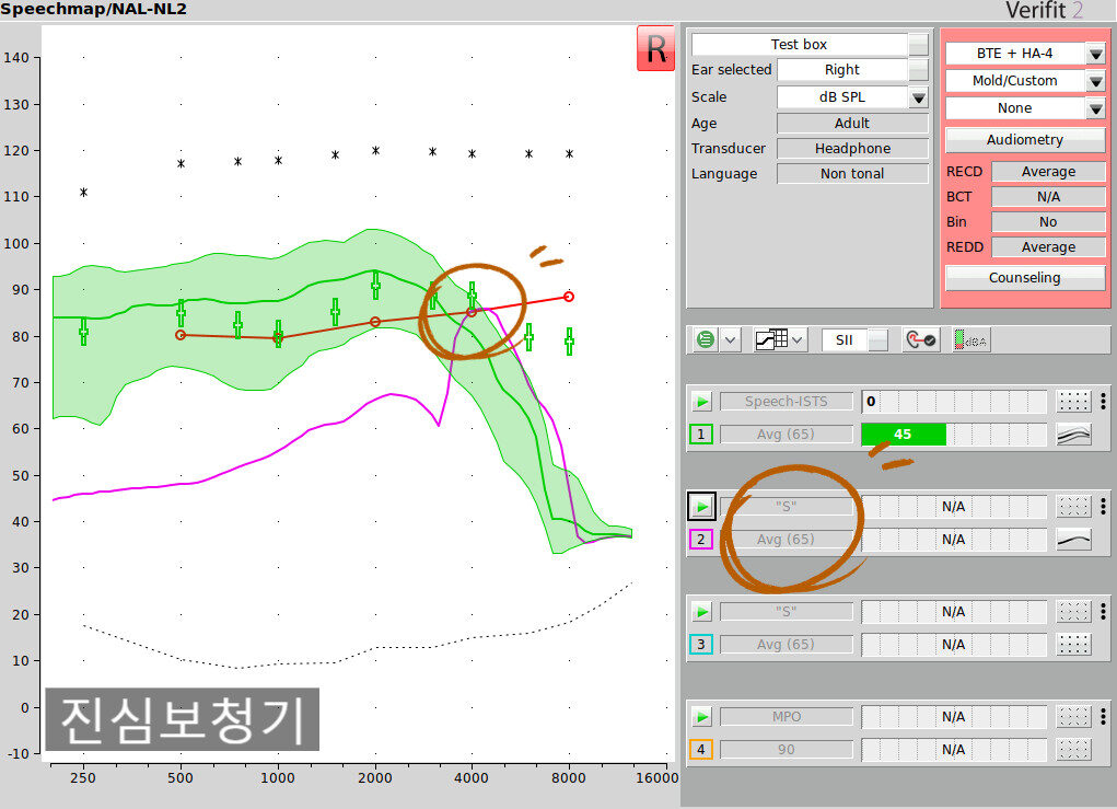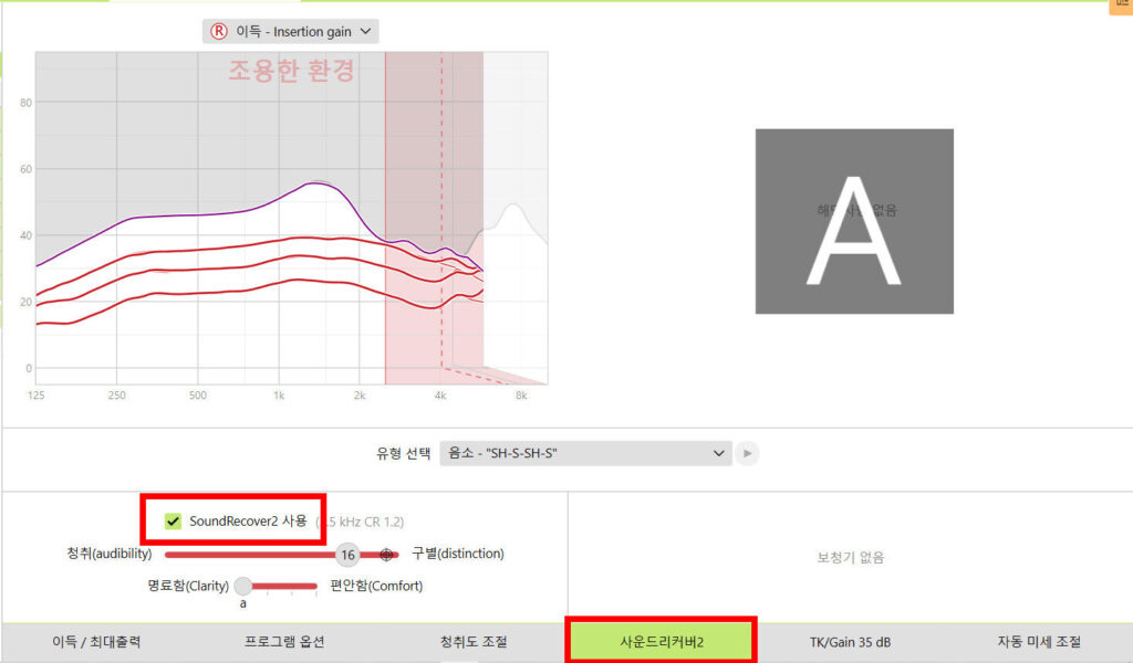 1. 주파수 압축을 논하기 전에, 현재 피팅에서 고주파 말소리가 실제로 어디까지 들리는지(MAOF) 를 먼저 확인해야 합니다.